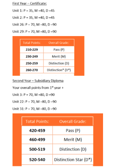 The above calculator will help you add up each of your unit grades to help predict your overall grade. Please note that we only use this for the Extended Certificate and Diploma groups, when you open the spreadsheet, click on the correct tabs at the bottom. **Please note, this calculator will only work if you download it and click to enable macros.